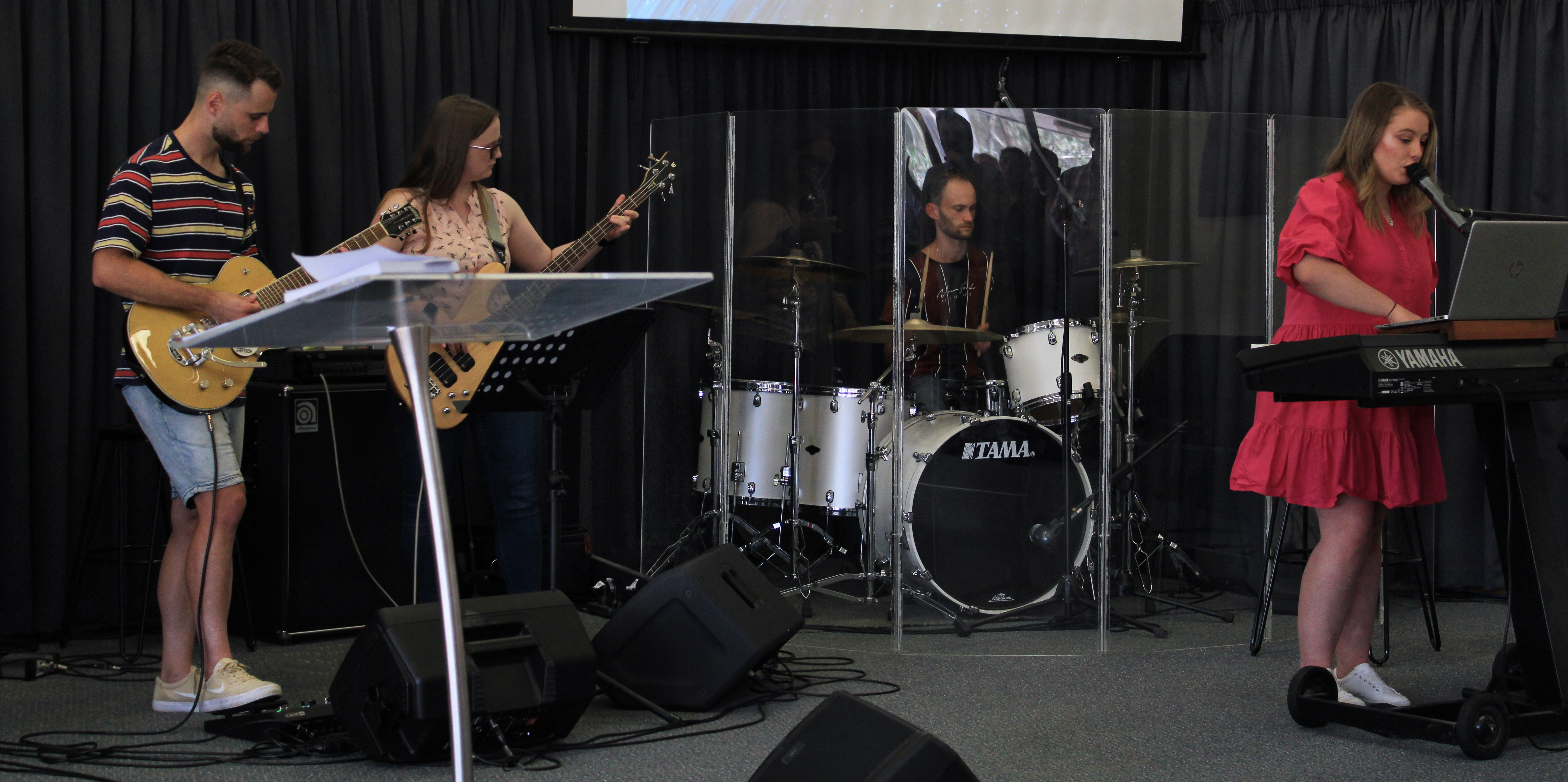 We start with an opening song then share a message from the Word and finish with a time of worship.